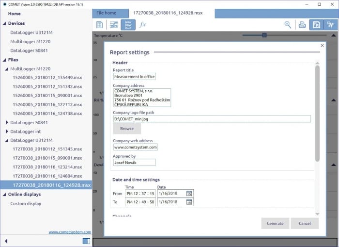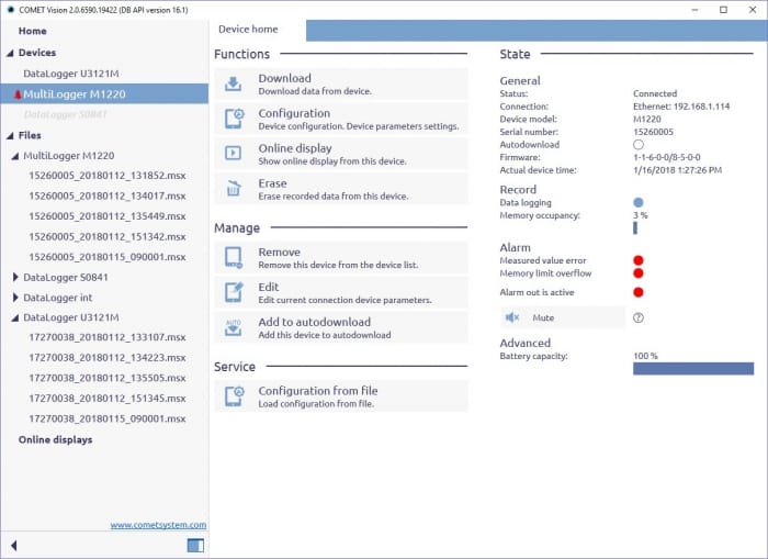 COMET Vision - Program pro dataloggery COMET řady Sxxxx, Rxxxx, Commetery Dxxxx a Multiloggery řady Mxxxx.
