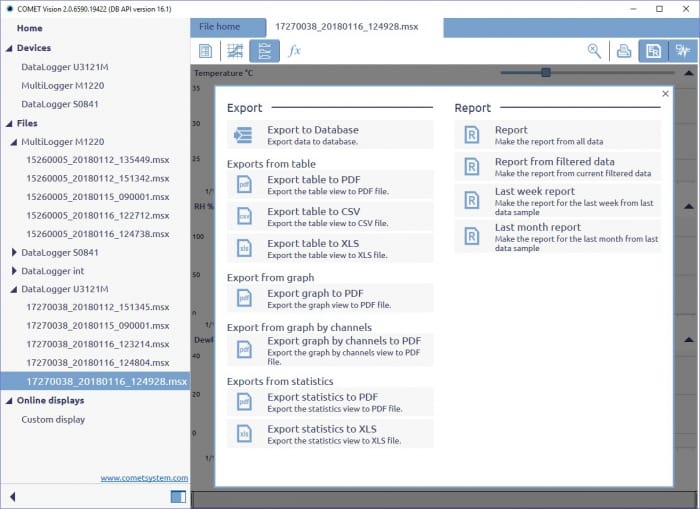 Software pro analýzu dat a nastavení přístrojů COMET Vision 2.0. Program umožňuje komunikaci s přístrojem, načtení informací o aktuálním nastavení a stavu záznamníku, změnu parametrů záznamu a načtení naměřených údajů.