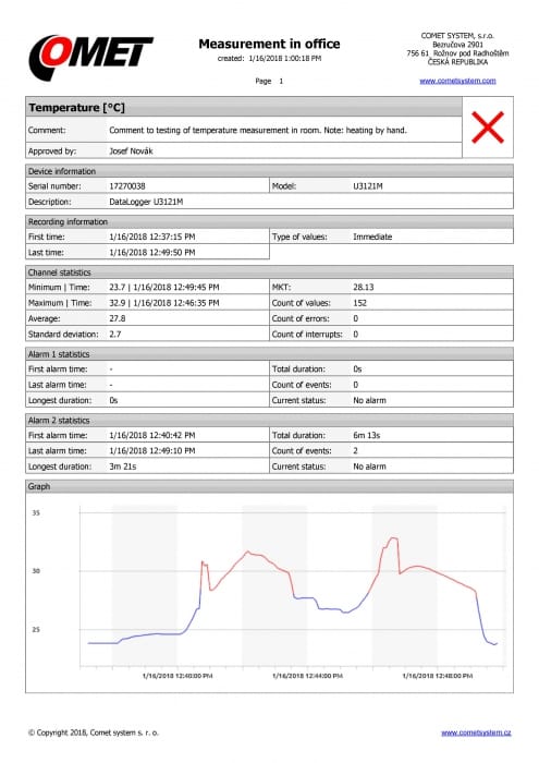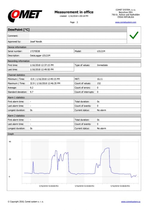 Přehledné zobrazení uložených dat, údajů o minimálních a maximálních hodnotách atd.Minimální hardwarové a softwarové požadavky na instalaci software COMET