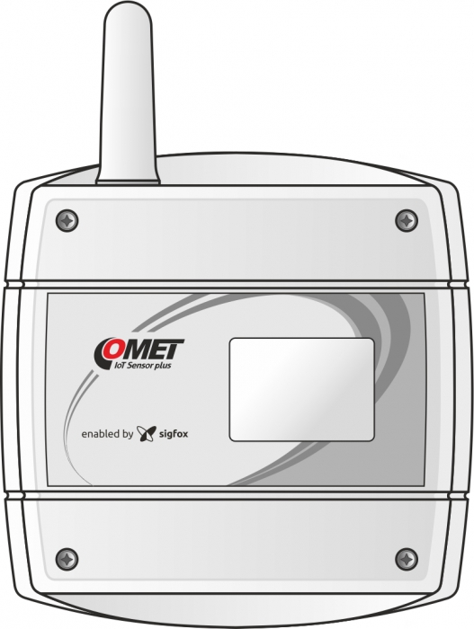 Přístroj může sledovat až 2 alarmové meze měřené veličiny. Překročení těchto mezí je indikováno zasláním mimořádné zprávy. COMET Cloud tuto alarmovou zprávu předá prostřednictvím e-mailu zvolenému uživateli. Přístroj je vhodný pro aplikace, které tolerují zpoždění informací doručovaných v síti Sigfox (max. 10 min).