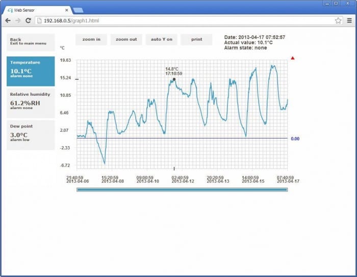 Snímač teploty a vlhkosti t-line Web Sensor. Komunikace prostřednictvím sítě Ethernet.