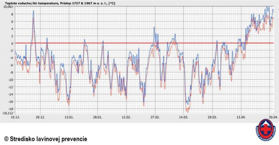 Stredisko lavínovej prevencie už od roku 1972 systematicky monitoruje teplotu vzduchu v horských oblastiach. Pôvodne sa údaje merali pomocou starých termografov. Pri týchto prístrojoch sa namerané teploty vzduchu zaznamenávajú na papier. Termograf je v podstate mechanický stroj, ktorý otáča valcom na ktorom je papier. Na tento papier potom ručička namočená v atramente zaznamenáva priebeh teplôt. Temografy vždy bolo potrebne pravidelne (raz do týždňa ) natáčať a záznam pracne vyčíslovať.