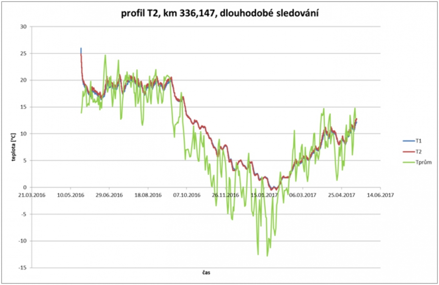 Monitoring průběhu teploty v konstrukčních vrstvách pražcového podloží
