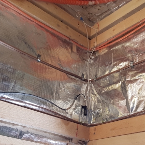 Vzhledem k výše uvedenému bylo požadováno preventivně monitorovat relativní vlhkost v izolovaném prostoru, kde byl nainstalováno měření teploty, relativní vlhkosti a rosného bodu na čtyřech vytipovaných bodech mezi folií a dřevěným vnitřním obložením.