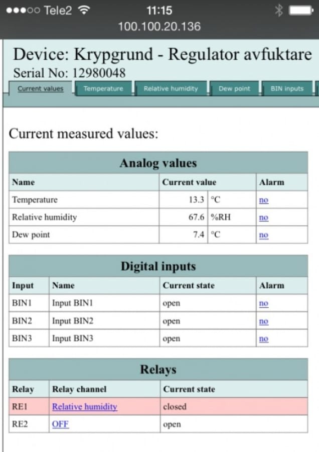 Díky vestavěnému webserveru je možno kontrolovat stavy z libovolného počítače, tabletu nebo chytrého telefonu přes internet.