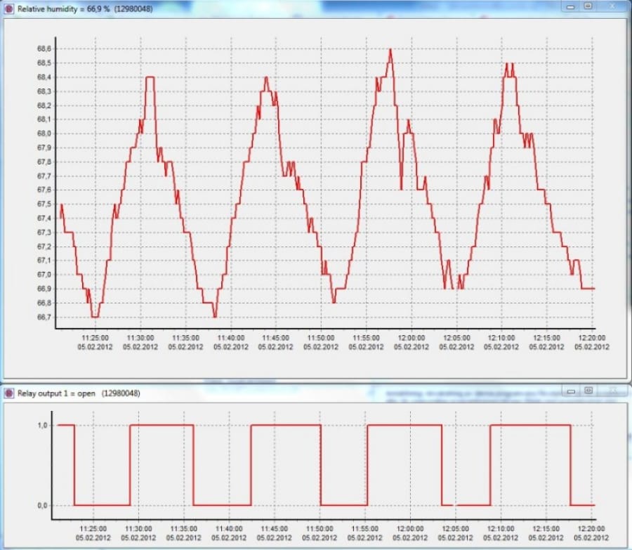 Tento problém byl vyřešen instalací snímače H3531, jehož prostřednictvím jsou při překročení nastavených hodnot zasílány alarmové emaily a spouštěn samotný odvlhčovač. Snímač je k vnitřní síti připojen pomocí modulů DEVOLO, které umožňují Ethernetové připojení sítě pomocí elektrické sítě.