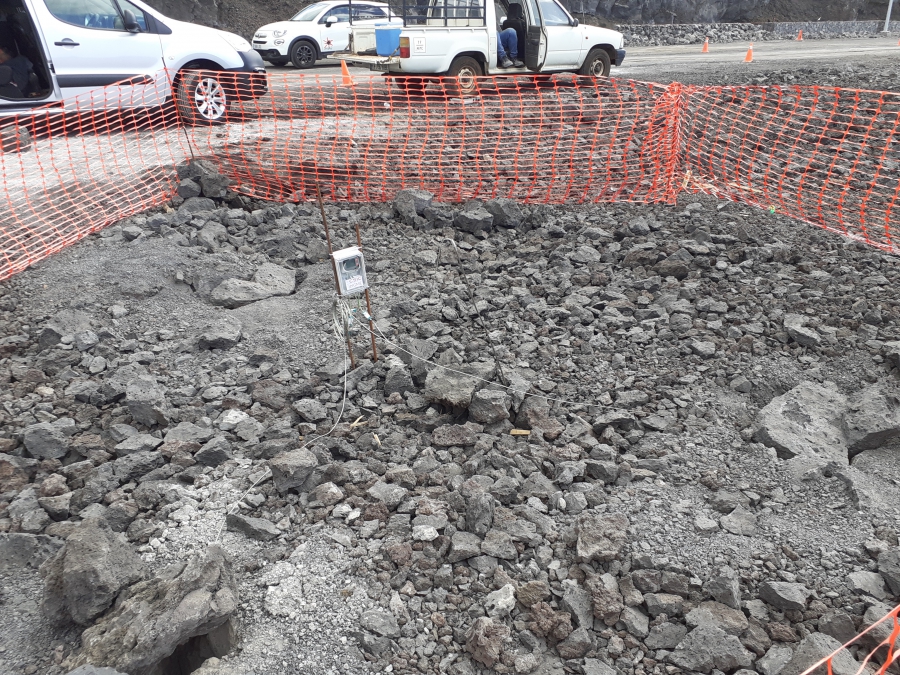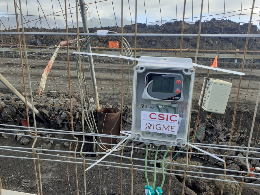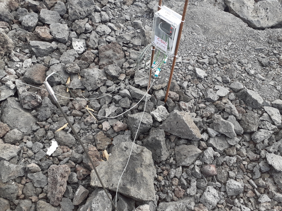 Měření teploty půdy v blízkosti sopky, která vybuchla v roce 2022 na ostrově La Palma. Teplota se měří v různých hloubkách.