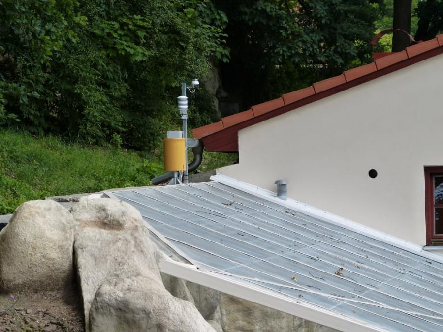 Sestava pro měření teploty, vlhkosti a tlaku vzduchu a intenzity slunečního záření a srážek “nad zemí” + teplota a vlhkost vzduchu, proudění vzduchu a detekce CO, CO2 a NH3 v chodbách pod zemí.